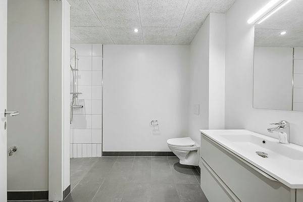 Lejlighederne er indrettet med køkken/alrum i åben forbindelse med stuen og direkte udgang til stor altan eller terrasse. Indretningen består af flotte lyse trægulve og de store vinduespartier giver et rigtig godt lysindfald. Badeværelset er med mørkegrå klinker og alle vægge og lofter er hvidmalede. Køkkenet er installeret med induktionskogeplade og der medfølger opvaskemaskine.